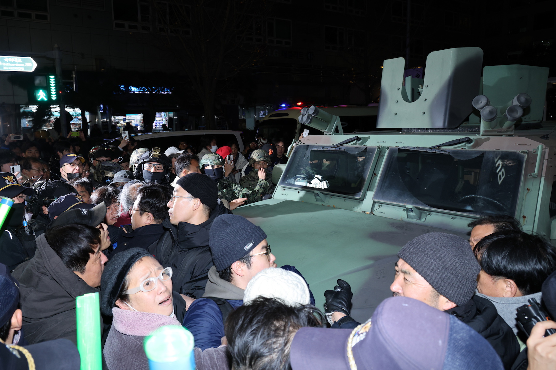 Χιλιάδες πολίτες ξεχύθηκαν στους δρόμους με αυτοσχέδια πλακάτ, κάποια εκτυπωμένα σε κόλλες χαρτιού Α4, και περικύκλωσαν το φρουρούμενο από αστυνομία και στρατό κοινοβούλιο, απαιτώντας να καταργηθεί ο στρατιωτικός νόμος και να παραιτηθεί ο πρόεδρος Γιουν. Οι ηγέτες, τόσο του κόμματος του Γιουν όσο και των υπολοίπων δυνάμεων καταδίκασαν απερίφραστα την αιφνιδιαστική κίνηση του προέδρου, ο οποίος από ό,τι φαίνεται δεν είχε καν μπει στον κόπο να ενημερώσει τους συμμάχους Αμερικανούς, αν δεχθεί κανείς τις «επίσημες διαρροές» από τον Λευκό Οίκο (οι ΗΠΑ έχουν στρατοπεδεύσει 30.000 στρατιώτες στη Νότια Κορέα). Εκατόν ενενήντα από τους 300 βουλευτές βρήκαν τρόπο και έφτασαν ως την κεντρική αίθουσα του κοινοβουλίου, την ώρα που στρατιώτες προσπαθούσαν να συλλάβουν τον πρόεδρο της Βουλής και τους πολιτικούς αρχηγούς. Καταψήφισαν το προεδρικό διάταγμα και, σύμφωνα με το σύνταγμα της Νότια Κορέας μπλόκαραν σε θεωρητικό επίπεδο την κίνηση του Γιουν που μετά το διάταγμα παρέμεινε για σχεδόν πέντε ώρες άφαντος.