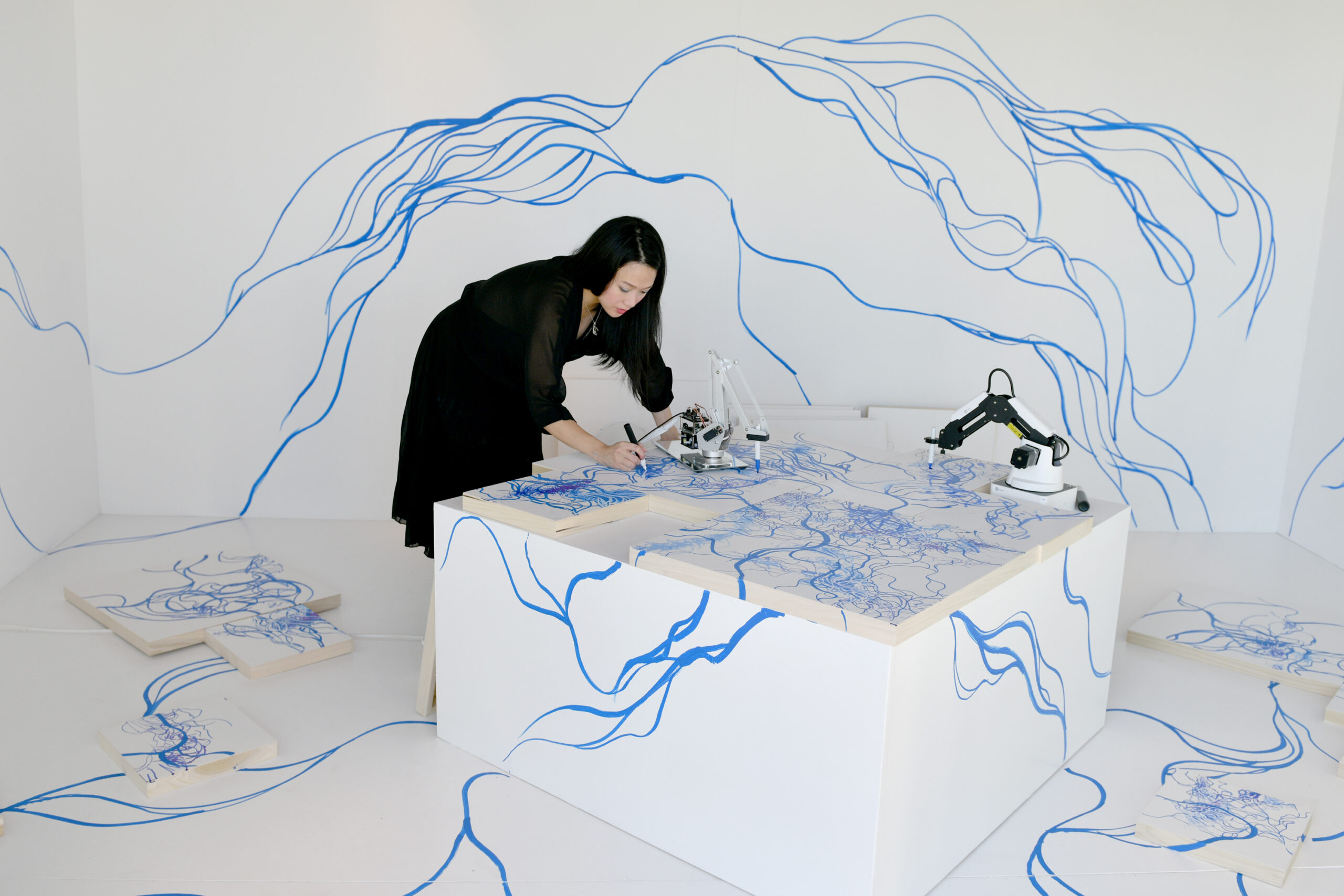 Η Καναδή καλλιτέχνης AI Σου-ουέν Τσανγκ διερευνά τις σχέσεις ανθρώπου-μηχανής και τις δυνατότητες για δημιουργικότητα και συνεργασία μεταξύ τους. Δημιουργεί τα έργα της με τη βοήθεια ρομπότ, τα οποία έχει σχεδιάσει η ίδια. Εξαιτίας των καινοτομιών της το 2023 συμπεριλήφθηκε στη λίστα με τους επιδραστικότερους ανθρώπους στον χώρο της τεχνητής νοημοσύνης του περιοδικού Time.