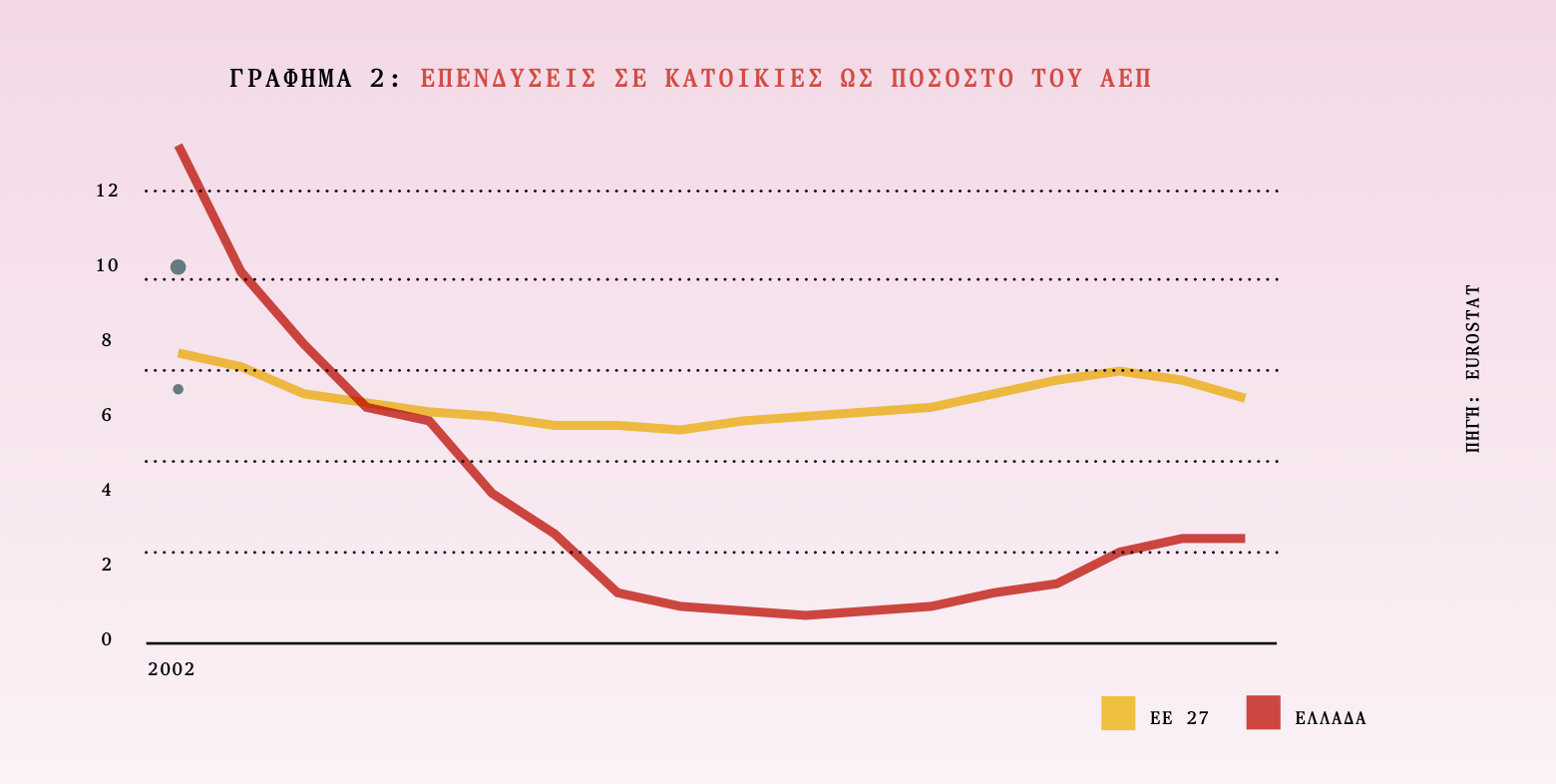 Η ΑΥΞΗΜΕΝΗ ΖΗΤΗΣΗ ΓΙΑ ΚΑΤΟΙΚΙΕΣ, ΜΕΓΑΛΟ ΜΕΡΟΣ ΤΗΣ ΟΠΟΙΑΣ ΠΡΟΕΡΧΕΤΑΙ ΑΠΟ ΤΟ ΕΞΩΤΕΡΙΚΟ, ΣΕ ΣΥΝΔΥΑΣΜΟ ΜΕ ΤΗ ΒΡΑΔΥΤΕΡΗ ΑΝΑΚΑΜΨΗ ΤΗΣ ΚΑΤΑΣΚΕΥΑΣΤΙΚΗΣ ΔΡΑΣΤΗΡΙΟΤΗΤΑΣ ΕΧΟΥΝ ΜΕΓΑΛΟ ΜΕΡΙΔΙΟ ΕΥΘΥΝΗΣ ΓΙΑ ΤΗΝ ΑΝΟΔΟ ΤΩΝ ΤΙΜΩΝ ΤΩΝ ΑΚΙΝΗΤΩΝ, ΠΟΥ ΠΛΕΟΝ ΣΧΗΜΑΤΙΖΟΥΝ ΔΥΣΜΕΝΕΙΣ ΣΥΝΘΗΚΕΣ ΓΙΑ ΤΗ ΣΤΕΓΗ ΤΩΝ ΕΛΛΗΝΙΚΩΝ ΝΟΙΚΟΚΥΡΙΩΝ. ΩΣ ΑΠΟΤΕΛΕΣΜΑ, Η ΚΟΙΝΩΝΙΚΗ ΣΤΕΓΑΣΤΙΚΗ ΠΟΛΙΤΙΚΗ, ΠΕΡΑΝ ΤΩΝ ΕΠΙΔΟΜΑΤΙΚΩΝ ΜΕΤΡΩΝ, ΑΛΛΑ ΚΑΙ ΕΚΕΙΝΩΝ ΠΟΥ ΣΚΟΠΕΥΟΥΝ ΝΑ ΜΕΙΩΣΟΥΝ ΤΙΣ ΚΕΝΕΣ ΚΑΙ ΑΝΕΚΜΕΤΑΛΛΕΥΤΕΣ ΚΑΤΟΙΚΙΕΣ, ΘΑ ΠΡΕΠΕΙ ΝΑ ΕΧΕΙ ΩΣ ΜΕΡΙΜΝΑ ΚΑΙ ΤΗΝ ΕΠΕΚΤΑΣΗ ΤΟΥ ΣΤΕΓΑΣΤΙΚΟΥ ΑΠΟΘΕΜΑΤΟΣ ΜΕ ΚΑΤΑΣΚΕΥΗ ΝΕΩΝ ΚΑΤΟΙΚΙΩΝ.