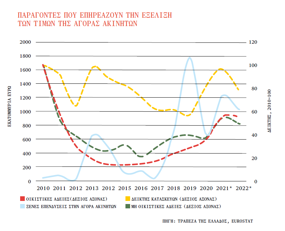 ΤΑ ΤΕΛΕΥΤΑΙΑ ΧΡΟΝΙΑ, ΣΤΗΝ ΕΛΛΑΔΑ, ΠΑΡΑΤΗΡΗΣΑΜΕ ΙΔΙΑΙΤΕΡΑ ΜΕΓΑΛΗ ΑΥΞΗΣΗ ΣΤΙΣ ΞΕΝΕΣ ΑΜΕΣΕΣ ΕΠΕΝΔΥΣΕΙΣ ΣΤΗΝ ΑΓΟΡΑ ΑΚΙΝΗΤΩΝ, ΣΤΙΣ ΚΑΤΑΣΚΕΥΕΣ, ΑΛΛΑ ΚΑΙ ΣΤΙΣ ΝΕΕΣ ΚΤΙΡΙΑΚΕΣ ΑΔΕΙΕΣ, ΠΑΡΑΓΟΝΤΕΣ ΟΙ ΟΠΟΙΟΙ ΑΦΟΡΟΥΝ ΑΜΕΣΑ ΤΗΝ ΕΞΕΛΙΞΗ ΤΩΝ ΤΙΜΩΝ ΤΩΝ ΑΚΙΝΗΤΩΝ.