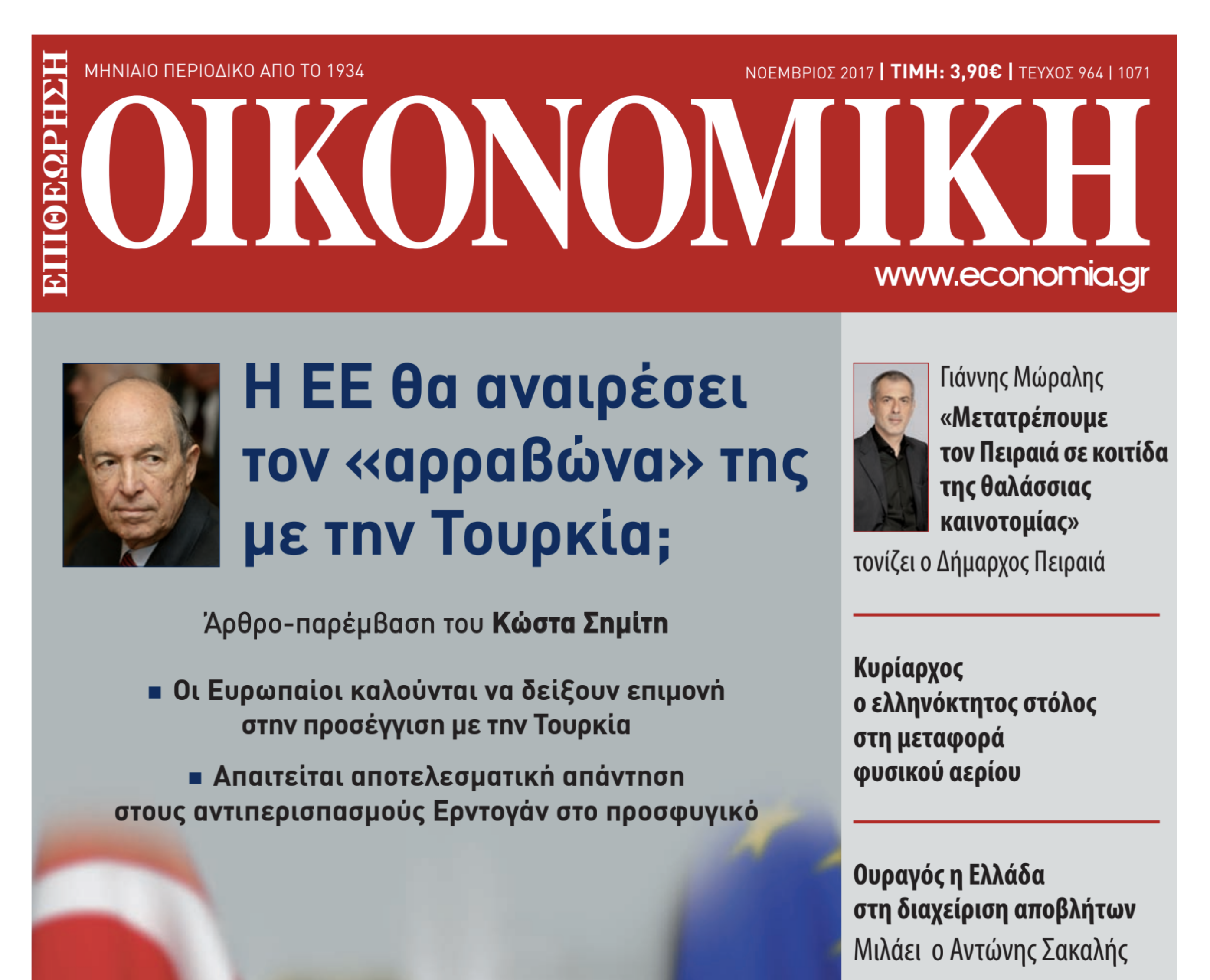 ΘΕΡΜΟΣ ΥΠΟΣΤΗΡΙΚΤΗΣ ΤΗΣ ΣΤΡΑΤΗΓΙΚΗΣ ΤΗΣ ΠΡΟΣΕΓΓΙΣΗΣ, Ο ΚΩΣΤΑΣ ΣΗΜΙΤΗΣ ΜΕ ΑΡΘΡΟ ΤΟΥ ΣΤΗΝ ΟΙΚΟΝΟΜΙΚΗ ΕΠΙΘΕΩΡΗΣΗ ΤΟ 2017, ΑΝΑΡΩΤΙΟΤΑΝ ΕΑΝ Η «ΕΕ ΑΝΑΙΡΕΣΕΙ ΤΟΝ “ΑΡΡΑΒΩΝΑ” ΤΗΣ ΜΕ ΤΗΝ ΤΟΥΡΚΙΑ». ΑΦΟΥ ΕΠΙΚΡΙΝΕΙ ΤΟΝ ΤΡΟΠΟ ΠΟΥ ΔΙΑΧΕΙΡΙΣΤΗΚΑΝ ΟΙ ΚΥΒΕΡΝΗΣΕΙΣ ΚΩΣΤΑ ΚΑΡΑΜΑΝΛΗ ΤΗ ΣΥΜΦΩΝΙΑ ΤΟΥ ΕΛΣΙΝΚΙ, ΕΠΙΣΗΜΑΙΝΕΙ ΟΤΙ «ΤΟ ΘΕΜΑ ΤΗΣ ΕΥΡΩΤΟΥΡΚΙΚΗΣ ΠΟΡΕΙΑΣ ΑΝΑΜΦΙΒΟΛΑ ΑΠΟΤΕΛΕΙ ΜΙΑ ΔΙΑΣΤΑΣΗ ΤΗΣ ΓΕΝΙΚΟΤΕΡΗΣ ΣΥΖΗΤΗΣΗΣ» ΑΝ ΚΑΙ ΠΑΡΑΔΕΧΕΤΑΙ ΟΤΙ «Η ΕΝΤΑΞΗ ΕΙΝΑΙ ΕΝΑ ΜΕΓΑΛΟ ΘΕΜΑ ΚΑΙ ΣΗΜΕΡΑ ΟΧΙ ΤΟ ΠΡΩΤΕΥΟΝ», ΚΑΘΩΣ «ΔΕΝ ΕΙΝΑΙ ΔΥΝΑΤΗ ΥΠΟ ΤΙΣ ΣΗΜΕΡΙΝΕΣ ΣΥΝΘΗΚΕΣ».
